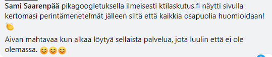 Mikäli tarvitset apua KTI Laskutukselta, Sami Saarenpää on yhteyshenkilömme, joka tarjoaa aina nopeaa palvelua laadusta tinkimättä. Samiin pääset tutustumaan lisää täältä ja voit helposti varata hänen kanssaan myös etätapaamisen aiheesta.